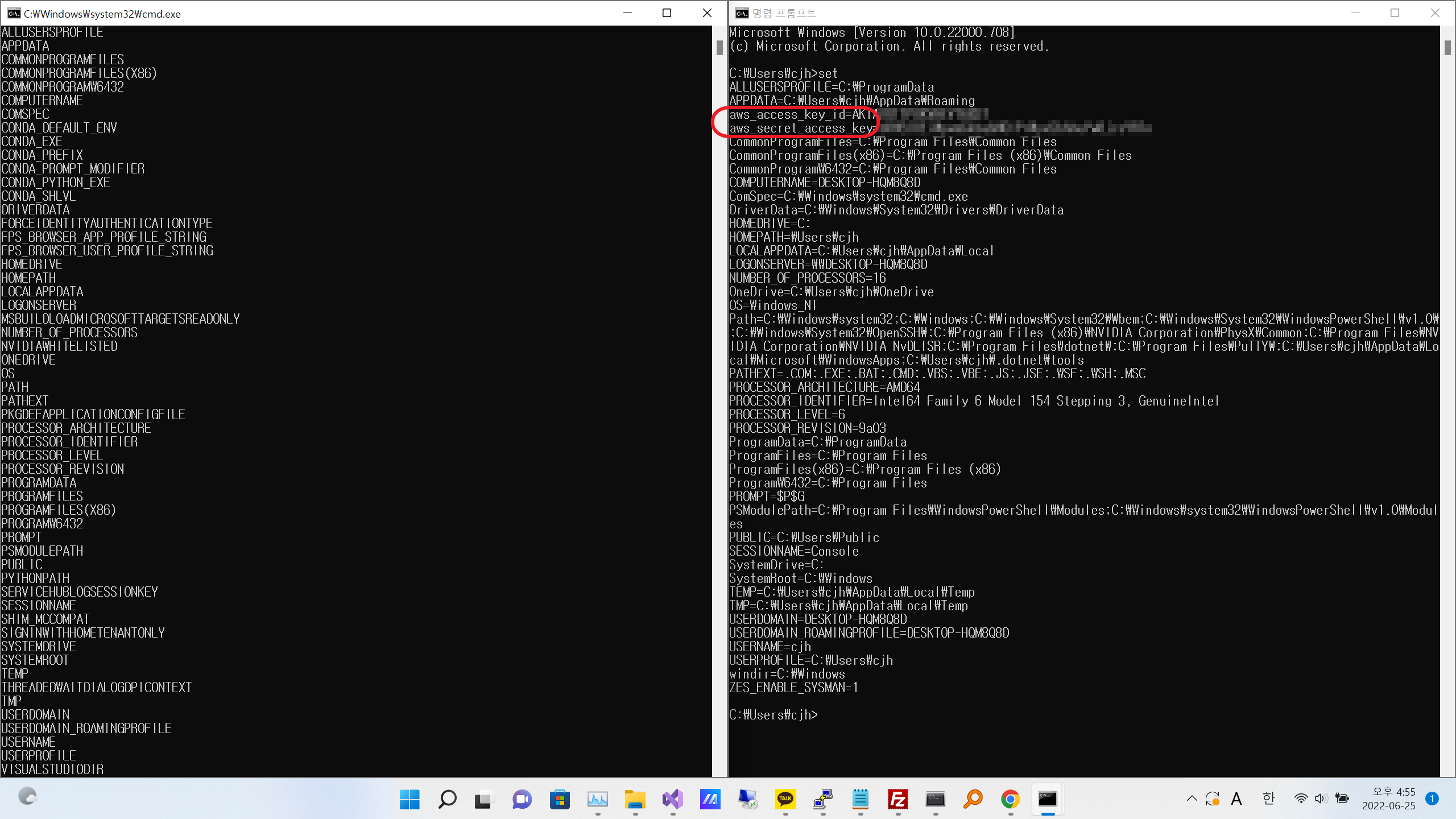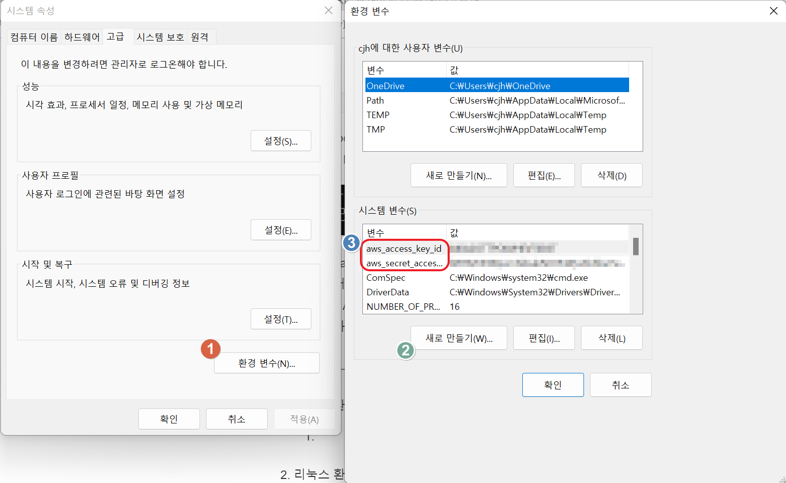set AWS_SECRET_ACCESS_KEY=비밀키 입력