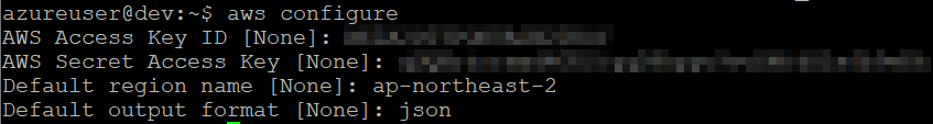 위와 같이 입력하되 region name은 서울이라 ap-northeast-2를 했고 output format은 json 형식으로 보게 입력한다.