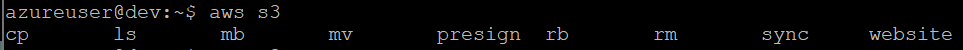 aws s3 [Tab] 버튼을 누르면 aws cli 중 s3에서 사용 가능한 명령어 리스트가 나와야 한다.