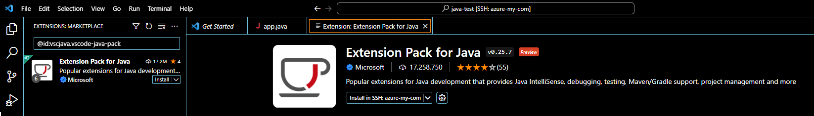 VS Code를 실행시킨 다음 확장 프로그램에 Extension Pack for Java을 검색 후 install 한다.