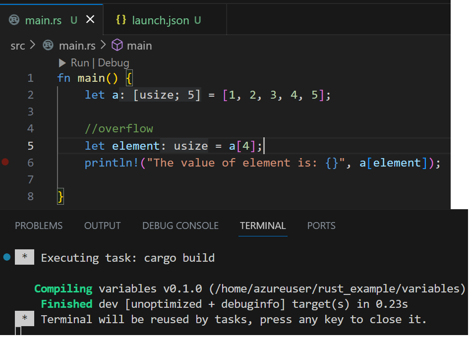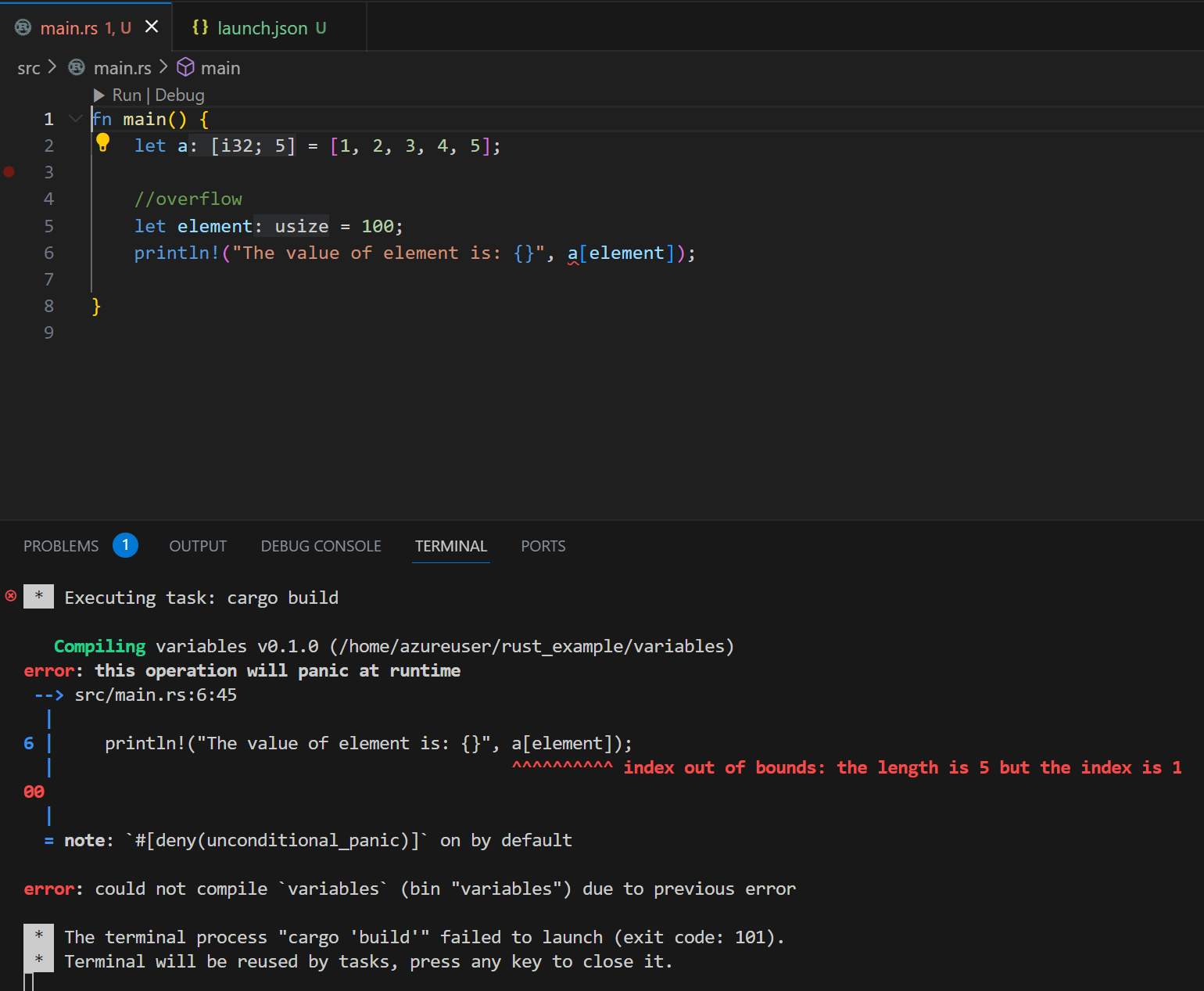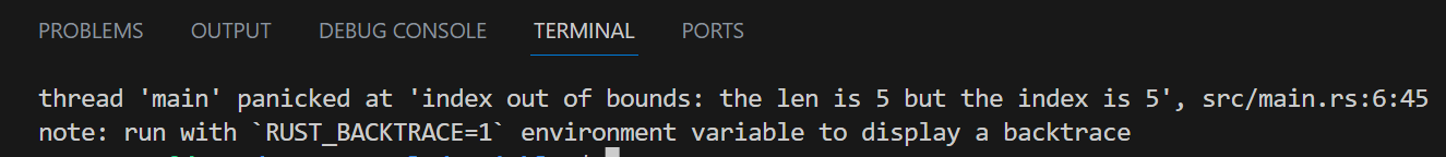 rust에서 array의 인덱스가 over 될 경우 친절하게 알려준다.
